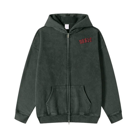 Zero Collection Acid Washed Zip Fleece Hoodie Jacket - 360 GMS